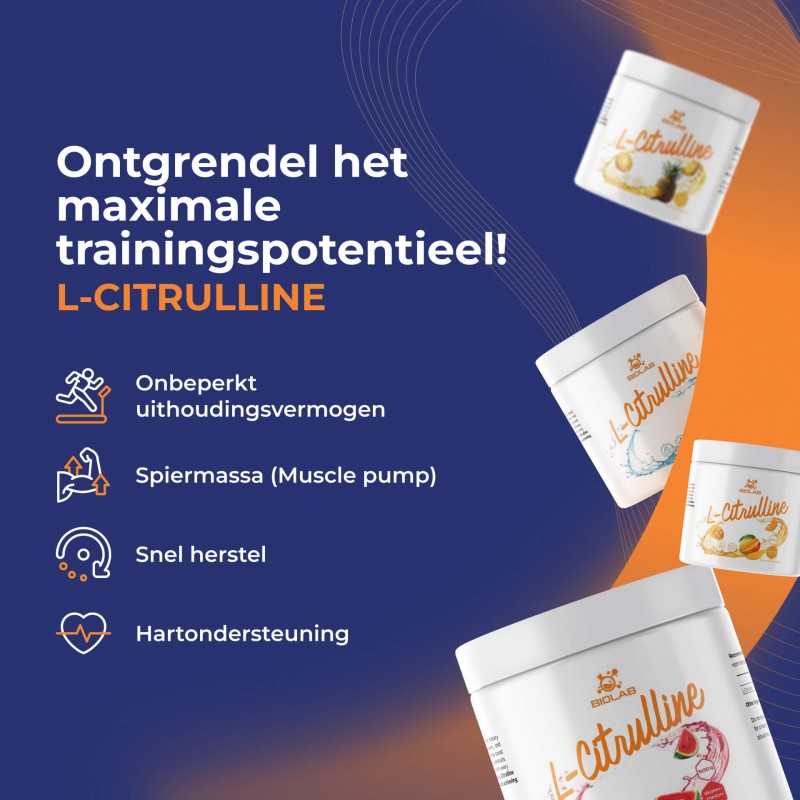 L-citrulline is een krachtige aminozuur die de fysieke prestaties ondersteunt, de doorbloeding verbetert, de spierpomp vergroot, het herstel versnelt en de productie van stikstofmonoxide ondersteunt. Als voedingsaanvulling kan het een sleutelelement zijn in het supplementatieplan van elke sporter.